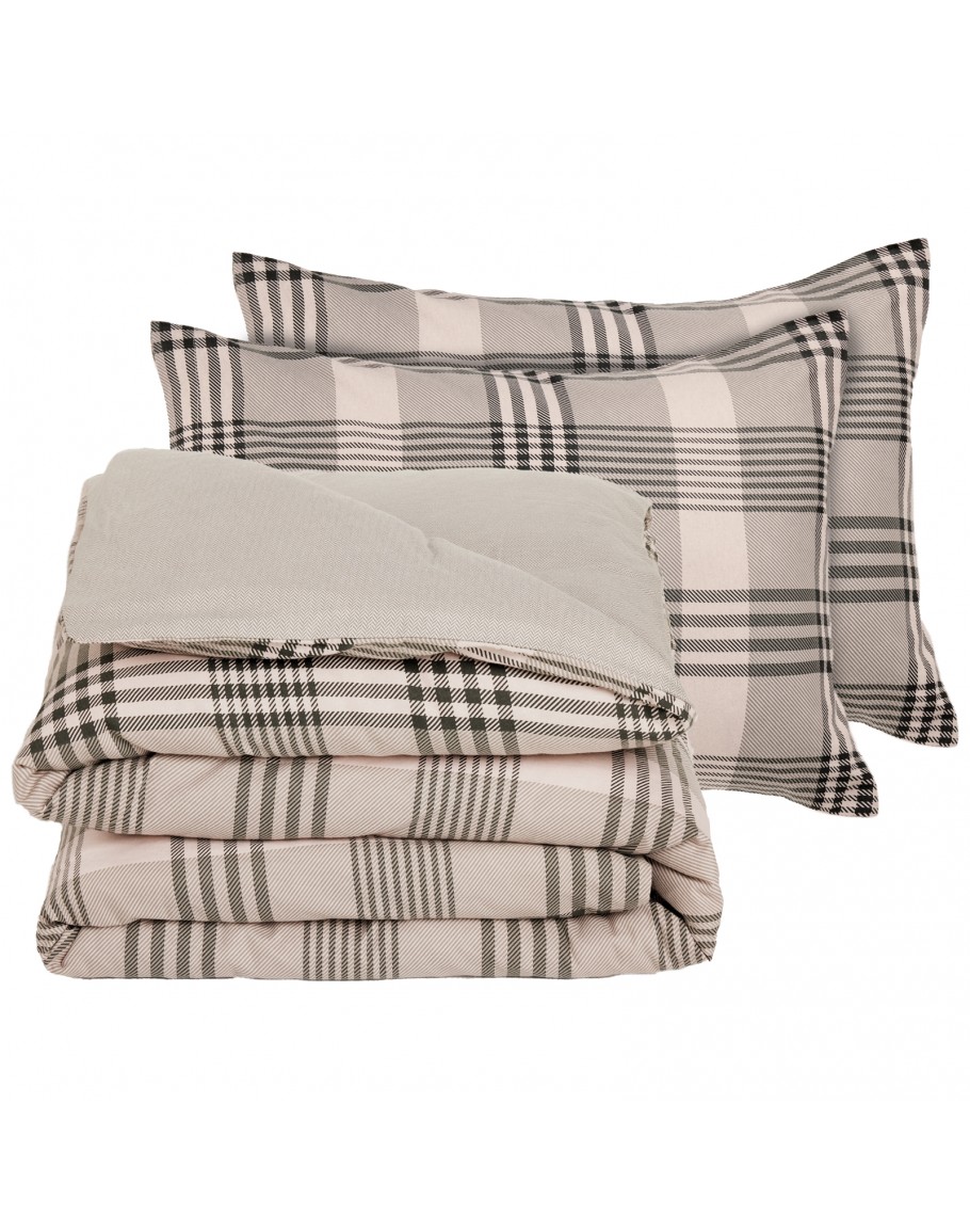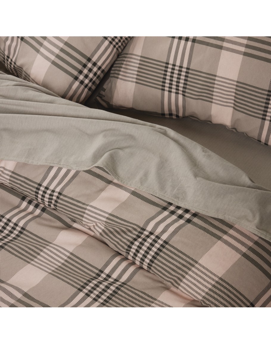 Σετ παπλωματοθήκη φανελένια δύο όψεων. Είναι από 100% υποαλλεργικό βαμβάκι με πυκνότητα ύφανσης 160TC, απαλό στην αφή, ανθεκτικό στη χρήση με ειδική επεξεργασία για εύκολο σιδέρωμα. Το σετ αποτελείται από μία παπλωματοθήκη διάστασης 220Χ240εκ και δύο μαξιλαροθήκες 50Χ70εκ. Das home...makes your house a home!