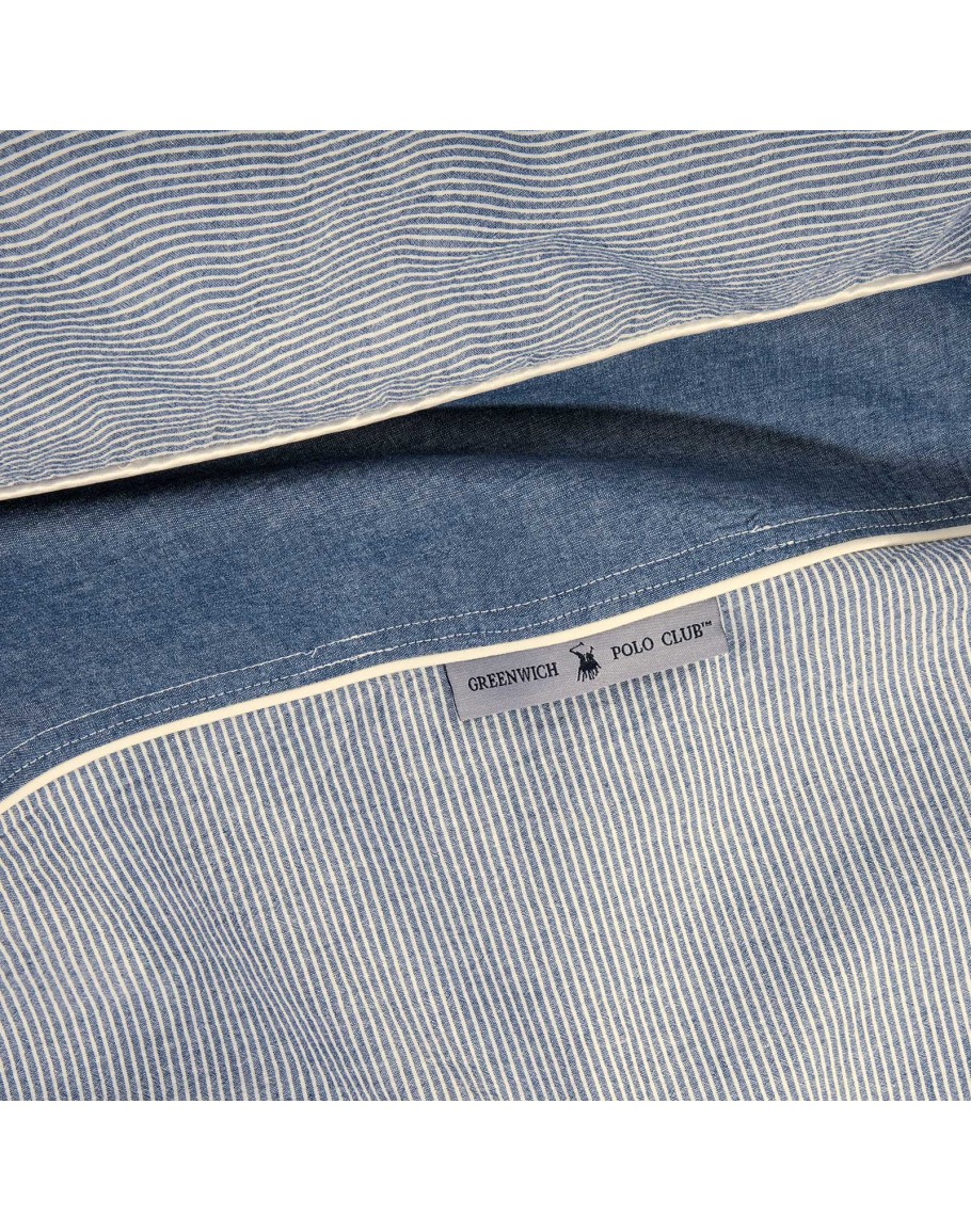 Σετ παπλωματοθήκη Greenwich Polo Club, prewashed νηματοβαφή της σειράς Εssential. Το ύφασμα του είναι από υποαλλεργικό 100% βαμβάκι υψηλής ποιότητας με πυκνότητα ύφανσης 160TC και με ειδική επεξεργασία για εύκολο σιδέρωμα. Το σετ αποτελείται από μία παπλωματοθήκη διαστάσεων 220Χ240εκ και δύο μαξιλαροθήκες 50Χ70+2εκ. Αυτό που χαρακτηρίζει την συλλογή είναι τα ιδιαίτερα σχέδια και οι χαρακτηριστικές αποχρώσεις. Επιλέξτε Greenwich Polo Club για να απολαύσετε ποιότητα, στυλ και πολυτέλεια.