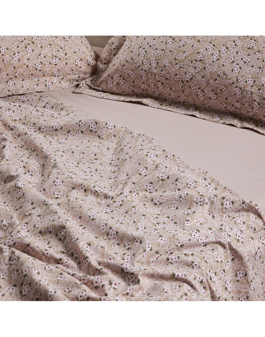 Εμπριμέ σετ σεντόνια της σειράς Casual. Είναι από 70% βαμβάκι και 30% pol. με πυκνότητα ύφανσης 150TC, υποαλλεργικό, απαλό στην αφή, ανθεκτικό στη χρήση, με επεξεργασία για εύκολο σιδέρωμα. Το σετ περιλαμβάνει ένα πανωσέντονο 170×260εκ., ένα κατωσέντονο με λάστιχο 120×200+35εκ. και μία μαξιλαροθήκη 50×70+5εκ. με ραφή Oxford.