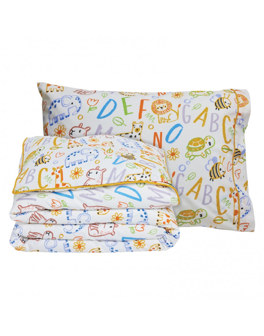 Σετ σεντόνια της σειράς Kid, με χαρούμενες παραστάσεις. Είναι από 70% υποαλλεργικό βαμβάκι και 30% πολυεστέρα με πυκνότητα ύφανσης 150 TC, απαλό στην αφή & ανθεκτικό στη χρήση. Το σετ περιλαμβάνει ένα πανωσέντονο 170Χ260εκ, ένα κατωσέντονο 170X260εκ και μία μαξιλαροθήκη 50x70εκ. Das home...makes your house a home!